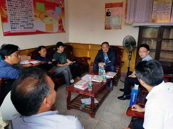 扶貧工作組與區(qū)、鎮(zhèn)、村相關(guān)人員商談扶貧方案