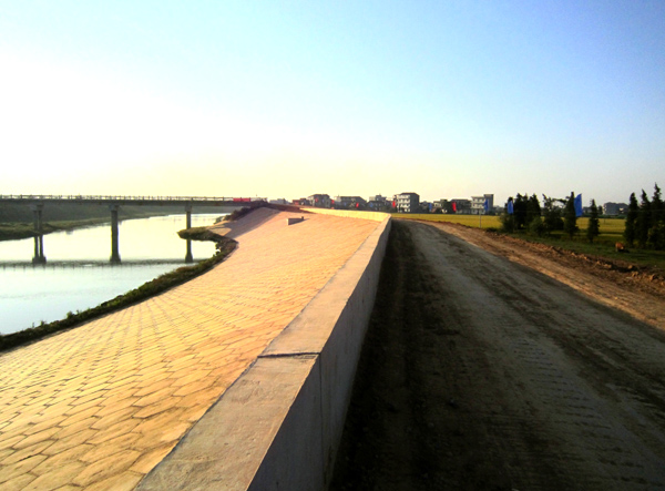 混凝土預(yù)制塊護坡與防浪墻外貌