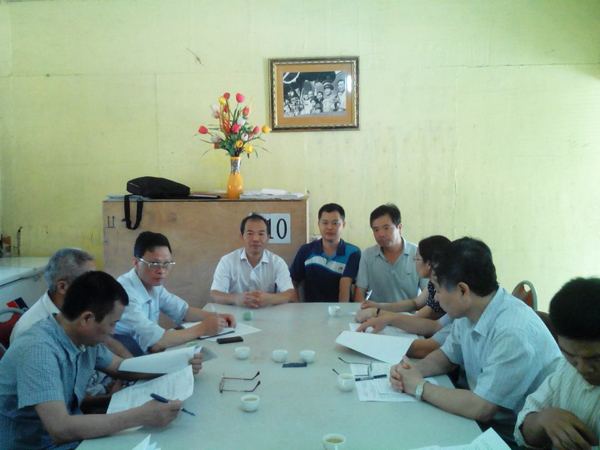 越南分公司負(fù)責(zé)人鄒春明、項(xiàng)目經(jīng)理夏愛民向阮玉平董事長介紹施工情況