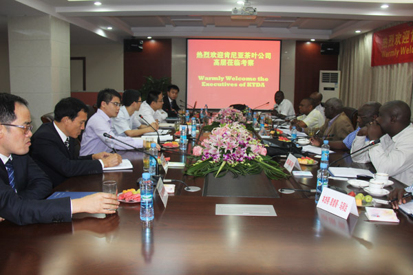 集團(tuán)資訊2014年9月上旬,肯尼亞茶葉發(fā)展有限公司董事Philip Kibirech NG’Etich先生一行七人應(yīng)邀來我公司參觀考察,旨在加深雙方了解和建立互惠共贏的合作。總經(jīng)理徐洪良代表公司對他們的到來表示熱烈歡迎,總會計(jì)師王義生、總工程師胡鴻煌及海外公司相關(guān)負(fù)責(zé)人參加了會見并陪同肯尼亞客人參觀了公司總部各部門。