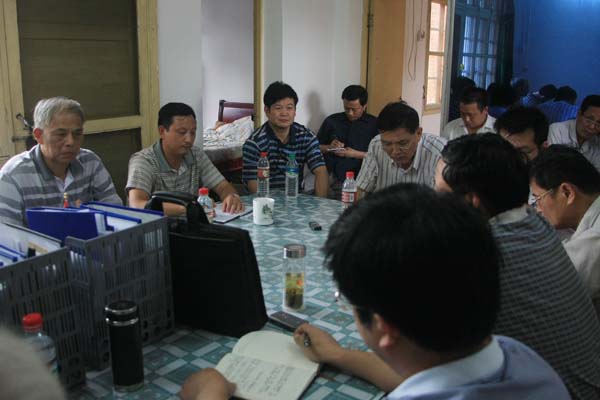 陳達(dá)恒副省長(zhǎng)在現(xiàn)場(chǎng)聽取業(yè)主、監(jiān)理、施工單位情況匯報(bào)