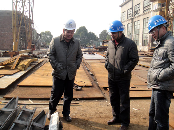 董事長兼總經理王元旦首先來到機械安裝公司車間,了解噴沙房工程建設情況及車間金屬結構制作安裝情況。他要求大家一定要把好質量關,精益求精,以優質的質量和信譽贏得市場,同時抓緊時間,安排、布置好年前的施工生產工作。