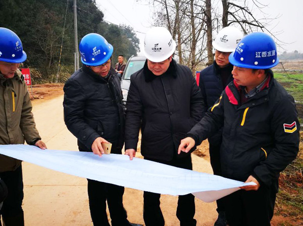 1月31日,董事長王元旦率總經理徐洪良、書記王延軍、工會主席史偉、董事會秘書劉俊視察廖坊灌區二期工程PPP項目。