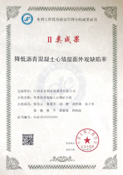 本次大會參報成果690項,涉及全國水利施工、設計、監理、咨詢等187家單位。經資料評價和現場發表評價,最終確定522項水利工程優秀QC成果。由我公司廖坊灌區QC小組編寫的《降低拱式渡槽拱肋懸鏈線高度偏差》和埃塞Wolkite瀝青混凝土心墻項目QC小組編寫的《降低瀝青混凝土心墻層面外觀缺陷率》兩項QC成果榮獲2019年水利工程優秀QC成果二等獎(II類獎)。