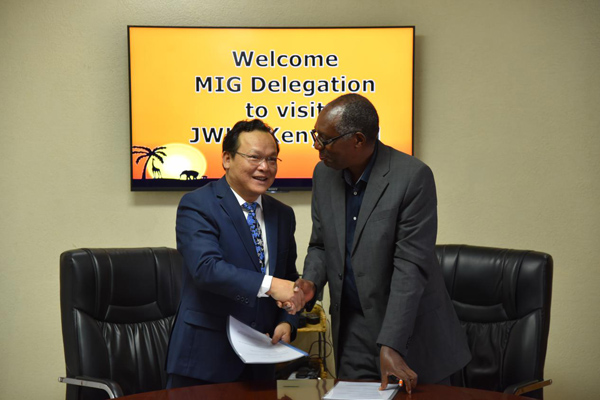 9月23日上午,盧旺達MIG考察團一行來我肯尼亞公司參觀。海外公司總經理黃鄭民,肯尼亞分公司總經理賀翔,肯尼亞分公司副總經理彭紅軍,肯尼亞分公司商務經理黃飛翔,肯尼亞分公司財務經理程炤宇等參加了會見。