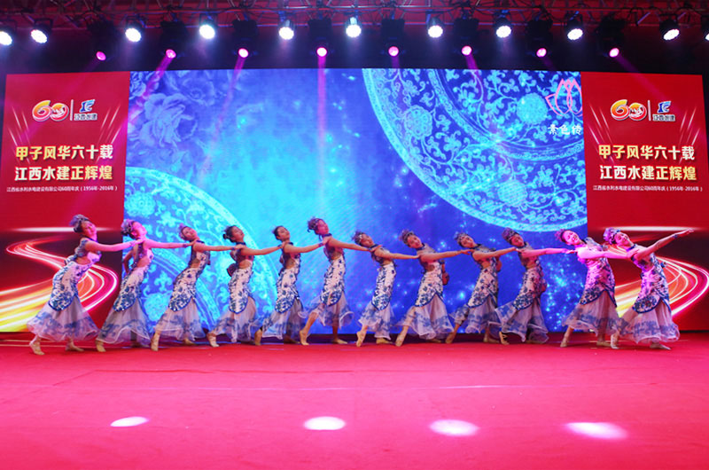 在喜慶熱鬧的開場舞《盛世中華》樂曲聲中,拉開了晚會的序幕,一曲優美動聽的《今天是你的生日》,表達了對公司六十華誕的深情祝福,配樂詩朗誦《我驕傲,我是水建人》抒發了水建人對水利事業的熱愛與執著,舞蹈《我的祖國》,展現了公司退休女職工的精神風采和對公司的深厚感情,男聲獨唱《羅灣那個地方》,喚起了多少“羅灣水建人”曾經在那里生活的記憶,來自上海的退休職工代表,為晚會帶來一首自己改編的歌曲《水建的朋友來相會》,詮釋了他們的激情與夢想,最后,由公司高中層管理人員和總部員工組成的60人大合唱《團結就是力量》,把晚會推向了高潮。團結是我們的力量之源,團結是企業騰飛的支點,走過了六十年輝煌歷程的江西水建,正在昂首闊步踏上新的征程。讓我們團結起來,以必勝的信心,發奮的努力,繼承和發揚老一輩水建人的精神和傳統,擔當起新一代水建人改革創新科學發展的光榮使命,繼往開來,解放思想,開拓創新,凝心聚力,不斷開創江西水建發展的新局面,創造更加燦爛的明天!